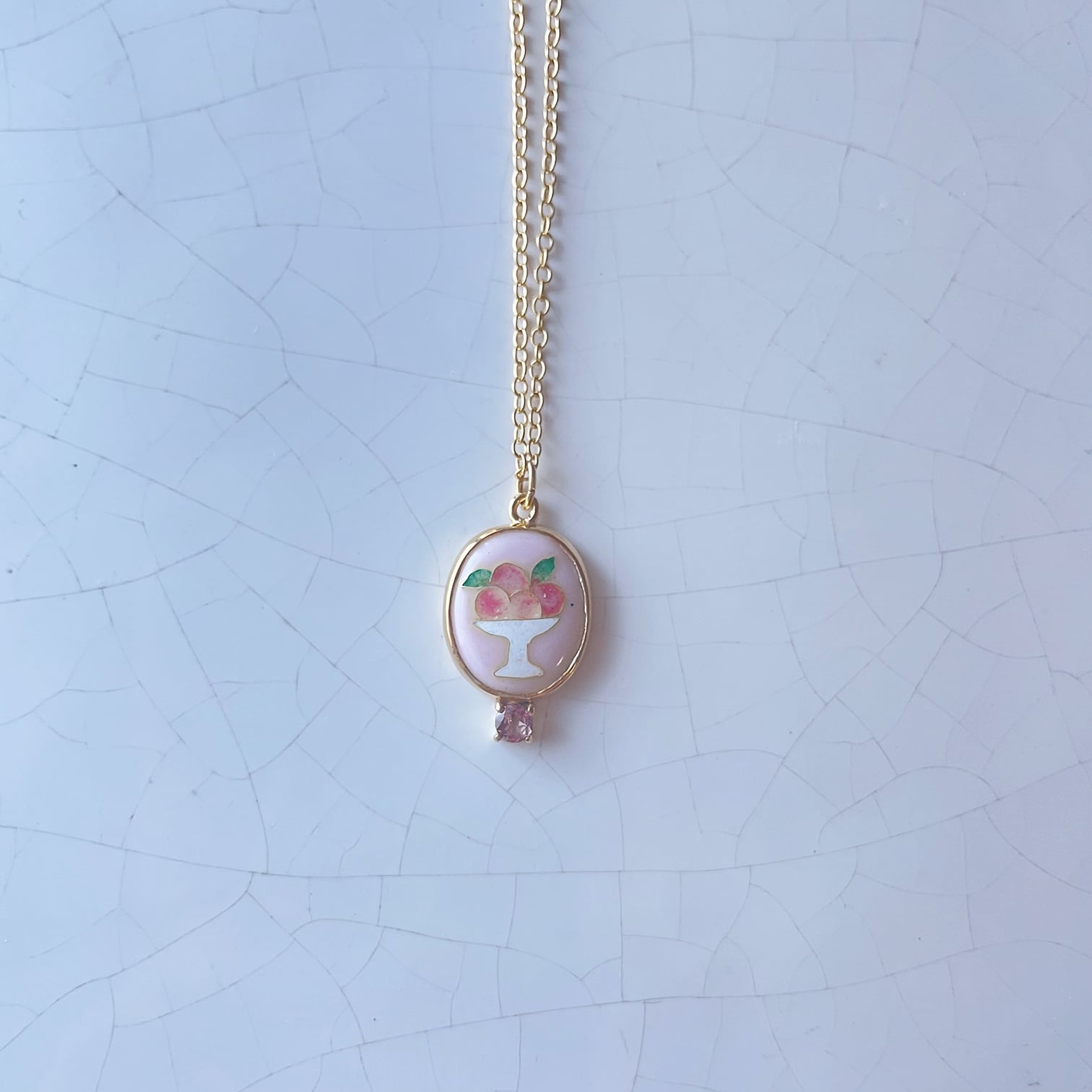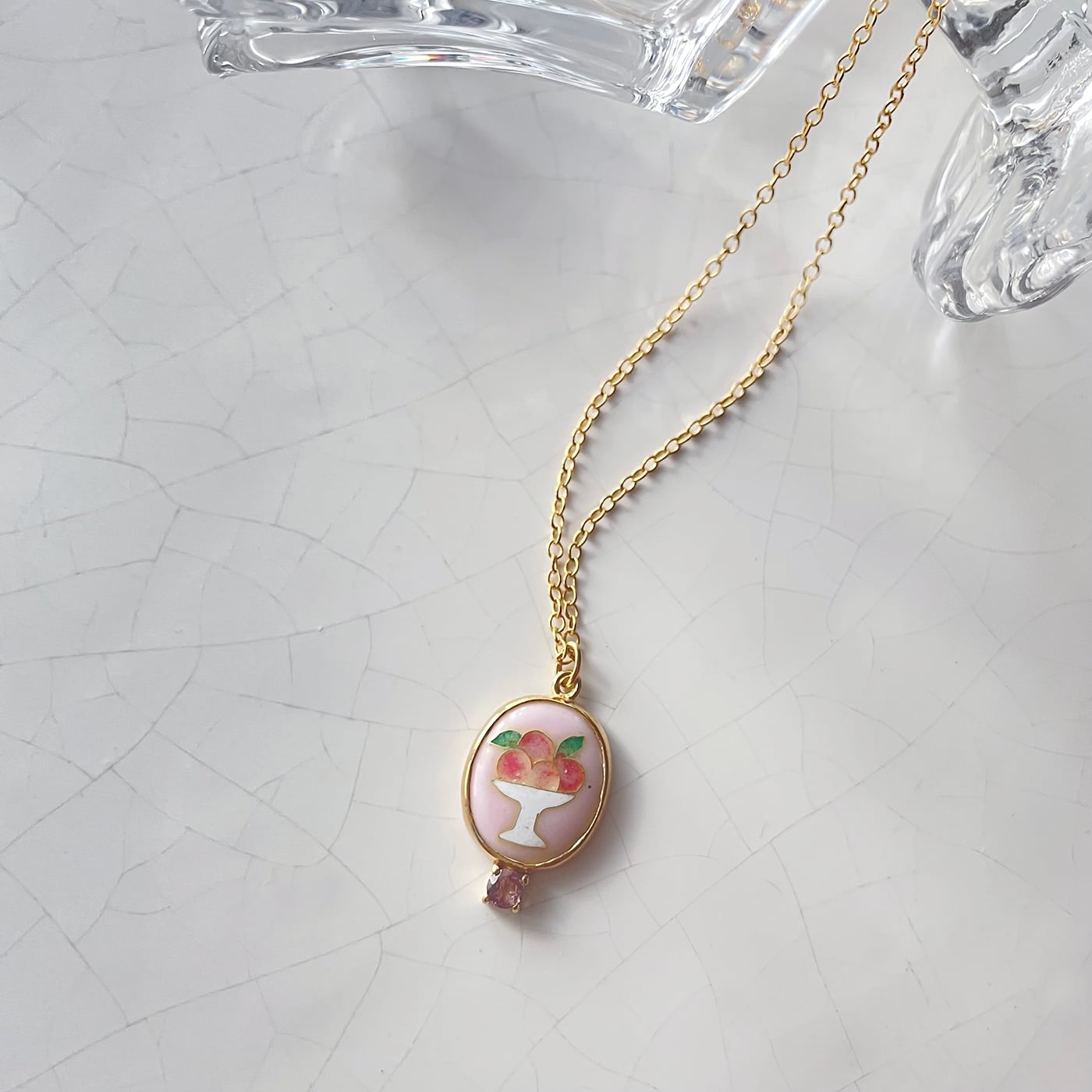 ひとつひとつの実の繊細なグラデーションから、桃のみずみずしさを感じられます。